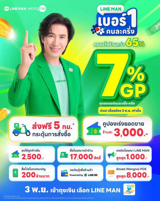 📍 สิทธิพิเศษสำหรับร้านค้าที่สมัครผ่าน LINE MAN ตั้งแต่ 3 พฤศจิกายน 2568 เป็นต้นไป