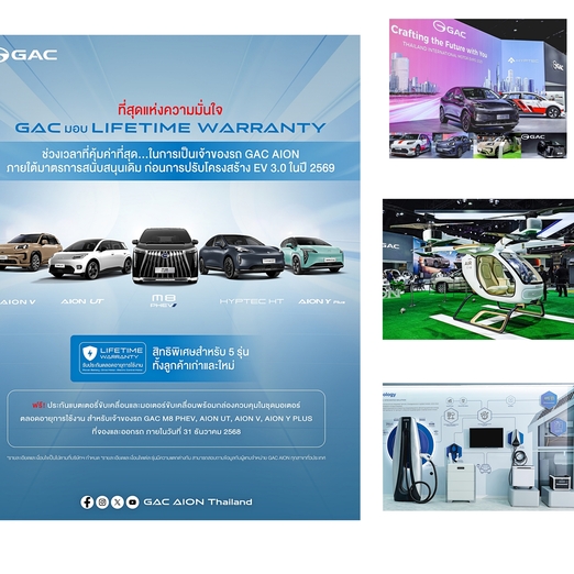 GAC AION Thailand ประกาศมอบสิทธิ์ “Lifetime Warranty” ให้กับรถยนต์ รุ่น GAC HYPTEC HT, GAC M8 PHEV, GAC AION V, GAC AION UT และ GAC AION Y Plus เพื่อขอบคุณทุกความไว้วางใจและสร้างความเชื่อมั่นสูงสุดแก่ลูกค้าชาวไทย