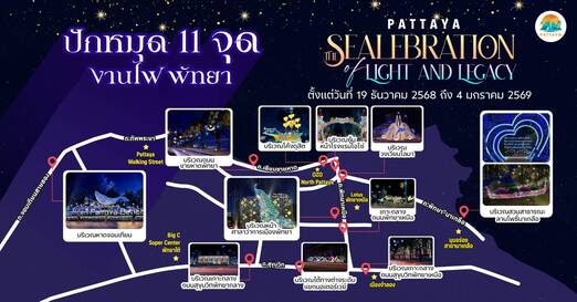 ทั้งนี้เทศกาลประดับไฟเมืองพัทยา กำหนดจัด 11 จุดทั่วเมืองพัทยา ครอบคลุมพื้นที่สำคัญ ย่านศูนย์กลางเมือง ถนนสายหลัก พื้นที่ท่องเที่ยว และแนวชายหาด ได้แก่