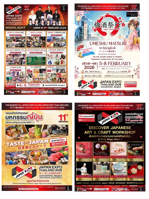 มาอิ่มอร่อยและสัมผัสประสบการณ์ “ญี่ปุ่นครบจบที่นี่” ในมหกรรมญี่ปุ่นที่ยิ่งใหญ่ที่สุดในเอเชียกับ JAPAN EXPO THAILAND 2026 ก้าวสู่ปีที่ 11 อย่างยิ่งใหญ่ ระหว่างวันศุกร์ที่ 6 – วันอาทิตย์ที่ 8 กุมภาพันธ์ 2569 ณ ศูนย์การค้าเซ็นทรัลเวิลด์