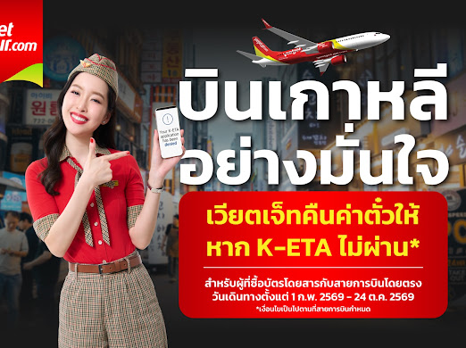 R-U-GO.COM:สายการบินเวียตเจ็ทไccทยแลนด์ เปิดตัวบริการ “K-ETA Refund & Credit Shell” เพื่ออำนวยความสะดวกและเพิ่มความมั่นใจให้กับผู้โดยสารที่เดินทางสู่ประเทศเกาหลีใต้