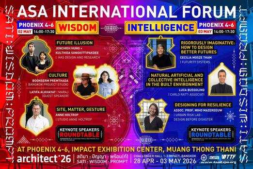 ทั้งนี้ กิจกรรมเสวนา ASA INTERNATIONAL FORUM จัดขึ้นเพียง 2 วัน (ช่วงงานสถาปนิก’69) ในวันที่ 2 และ 3 พฤษภาคม 2569 ณ ห้องฟินิกซ์ 4-6 อาคารอิมแพ็ค เอ็กซิบิชั่น เซ็นเตอร์